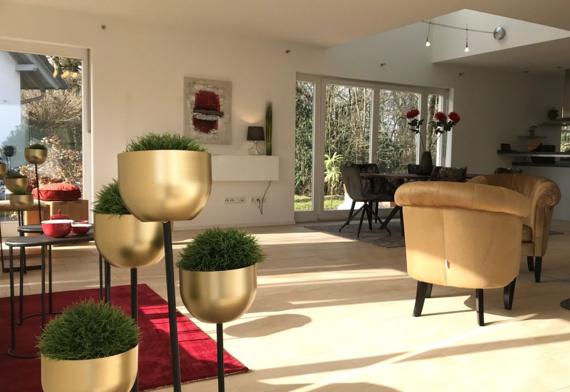 Meine Mission im Musterhauspark in Bad Vilbel bei Frankfurt besteht darin, die nicht mehr zeitgemäße Einrichtung eines Musterhauses der Firma ProHaus, einer Tochterfirma der Franz Gussek GmbH & Co.KG (Gussek Haus), dem aktuellen Geschmack anzupassen.